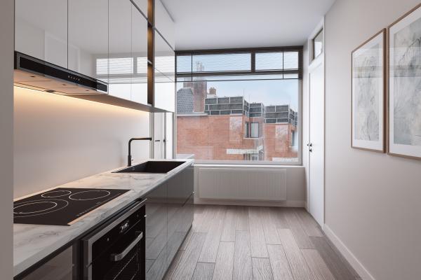 Droom je van wonen met vrij uitzicht over water en groen, terwijl de bruisende binnenstad op slechts enkele minuten afstand ligt? Dit lichte appartement op de derde woonlaag combineert het beste van twee werelden. Vanaf het ruime balkon op het zuidwesten geniet je van zonovergoten middagen en indrukwekkende luchten, terwijl het tweede balkon op het noordoosten perfect is voor een rustig ontbijt in de ochtendzon. Binnen zorgen grote raampartijen voor een aangename lichtinval en een gevoel van ruimte: een heerlijke plek om thuis te komen.