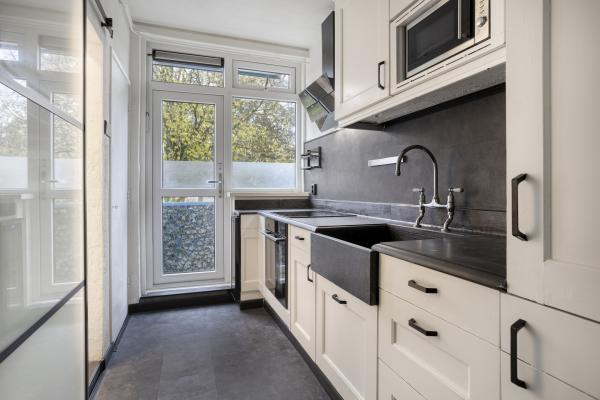 De separate keuken is modern uitgevoerd en bijzonder compleet, met onder meer een inductiekookplaat, afzuigkap, oven, magnetron, koelkast, vriezer en zelfs een wijnkoeler. Vanuit de keuken stap je het balkon aan de voorzijde op, waar je ’s ochtends kunt genieten van de eerste zonnestralen.