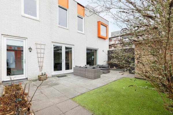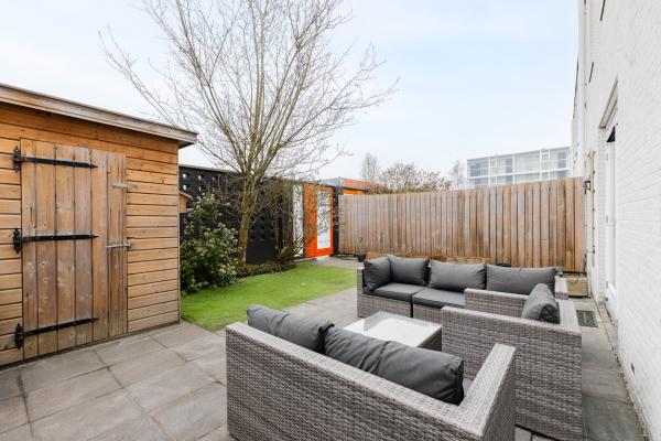 De woning is bereikbaar via een afgesloten binnenterrein met intercom en automatische deurvergrendeling, wat zorgt voor een veilig en rustig woongevoel. Via de deur in de tuinmuur kom je in de besloten tuin van circa 70 m² met een ruim zonneterras en een vrijstaande houten berging. De tuin biedt veel privacy en is gunstig op de zon gelegen, waardoor je hier van het vroege voorjaar tot het late najaar prettig buiten kunt zitten.