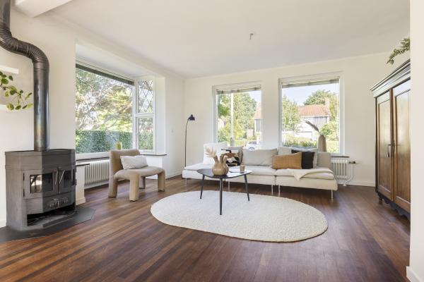 De woning heeft een lichte entree met toilet en trapopgang. De woonkamer is ruim en sfeervol, met erker, houtkachel en openslaande deuren naar de tuin. De keuken met bijkeuken vormt een goede basis voor modernisering en geeft toegang tot een uitbouw die uitstekend kan dienen als werk-, speel- of hobbykamer.