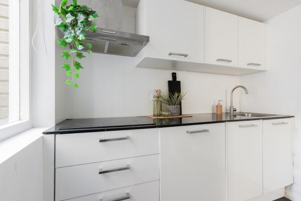 Via de entree kom je in de lange hal die toegang geeft tot alle vertrekken. Aan de straatzijde bevindt zich de lichte woon-/eetkamer met een praktische trapkast. De badkamer is voorzien van een wastafel en inloopdouche, en er is een separaat toilet. Aan de rustige achterzijde ligt de royale slaapkamer van circa 20 m². De nette keuken is uitgerust met diverse inbouwapparatuur, waaronder een inductiekookplaat, afzuigkap, vaatwasser, koelkast, vriezer, combi-oven en wasmachine. Vanuit de keuken stap je zo de knusse tuin in — een fijne plek om buiten te zitten.