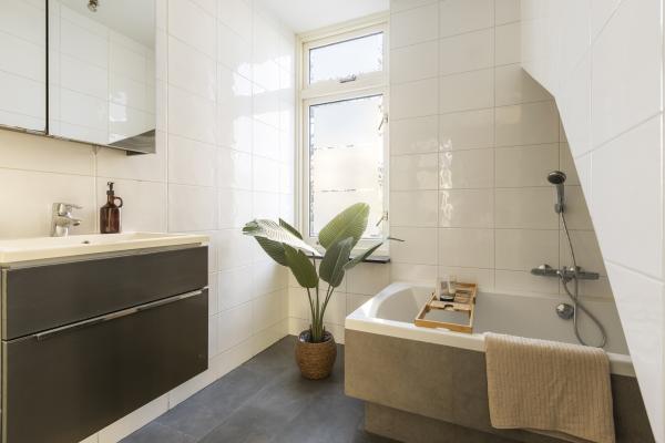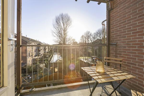 De L-vormige woonkamer is opvallend ruim en licht en biedt toegang tot het zonnige balkon. Dankzij de grote ramen en de fijne indeling is dit een prettige leefruimte waar je gemakkelijk een zit- en eethoek kunt creëren. De halfopen keuken sluit hier mooi op aan en is voorzien van diverse inbouwapparatuur. Aansluitend bevindt zich een berging met de cv-opstelling.