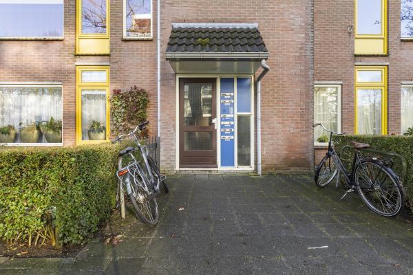 Begane grond: afgesloten portiek met intercomsysteem. Achter het complex bevindt zich een eigen stenen fietsenberging.