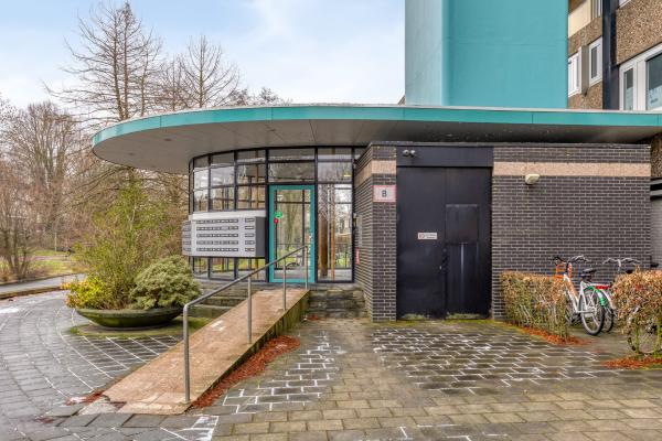 Via de gezamenlijke entree met intercom bereik je met de lift de galerij, waarna het trappenhuis toegang geeft tot het appartement.